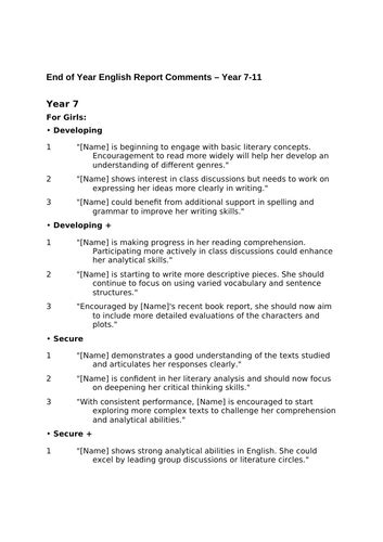 Download vels english report comments Hardcover